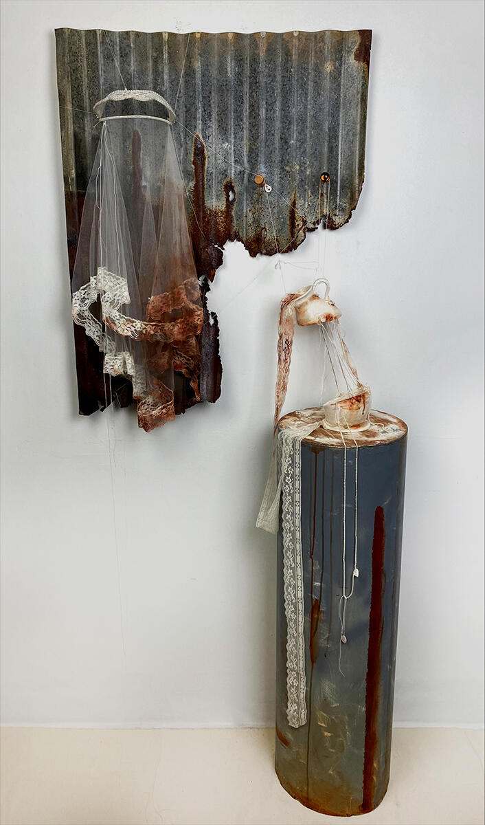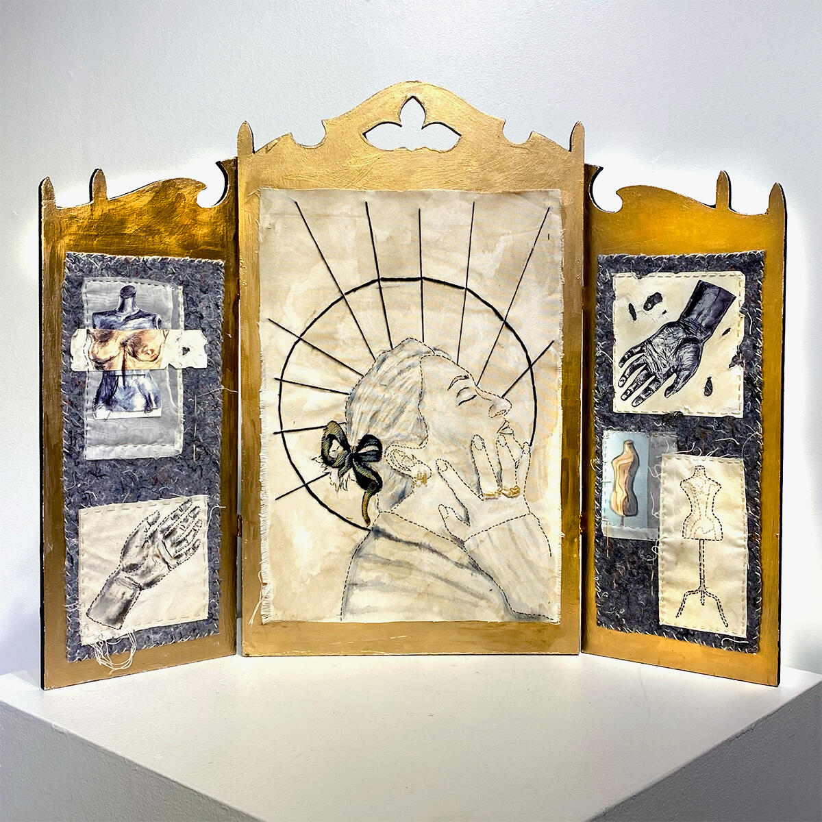 Straddling the spheres of fine art and craft, my work investigates storytelling as means of placemaking. I create works based on my own experience, as a young woman in the South, and the shared stories of those around me. These works take the form of sculptural drawings and collages, projected installations, thematic soundscapes, printed and quilted textiles, musical performances, and found-object assemblages. I collect and depict stories from in-person interviews, oral history collection, and conversations from my own relationships that illustrate the identities of a place or time. These stories act as grounding and orienting reflections, in a dissociated and socially siloed culture. Each story centers on real life experiences that reveal attachments to place, people and the divine.
